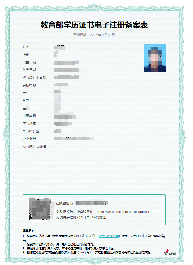 《教育部学历证书电子注册备案表》(样张见附件2);